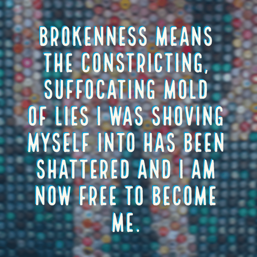 Broken doesn’t mean damaged – it means ready for a new use. It means I get put back together the way He intended. It means the constricting, suffocating mold of lies I was shoving myself into had been shattered and I was free to become ME.