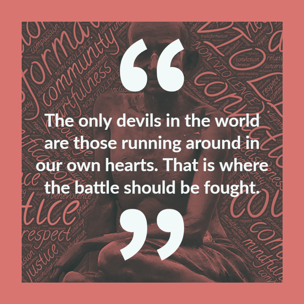 “The only real devils reside in our own hearts, this is where all our battles should be fought!” Gandhi, a soul wiser than I can ever hope to be, said this. And it is SO very true.