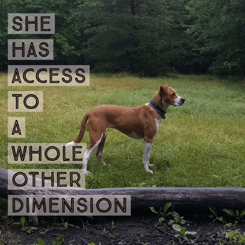 And the more time I spend walking with her in the woods, the more I realize that she truly has access to a whole other dimension than I do.