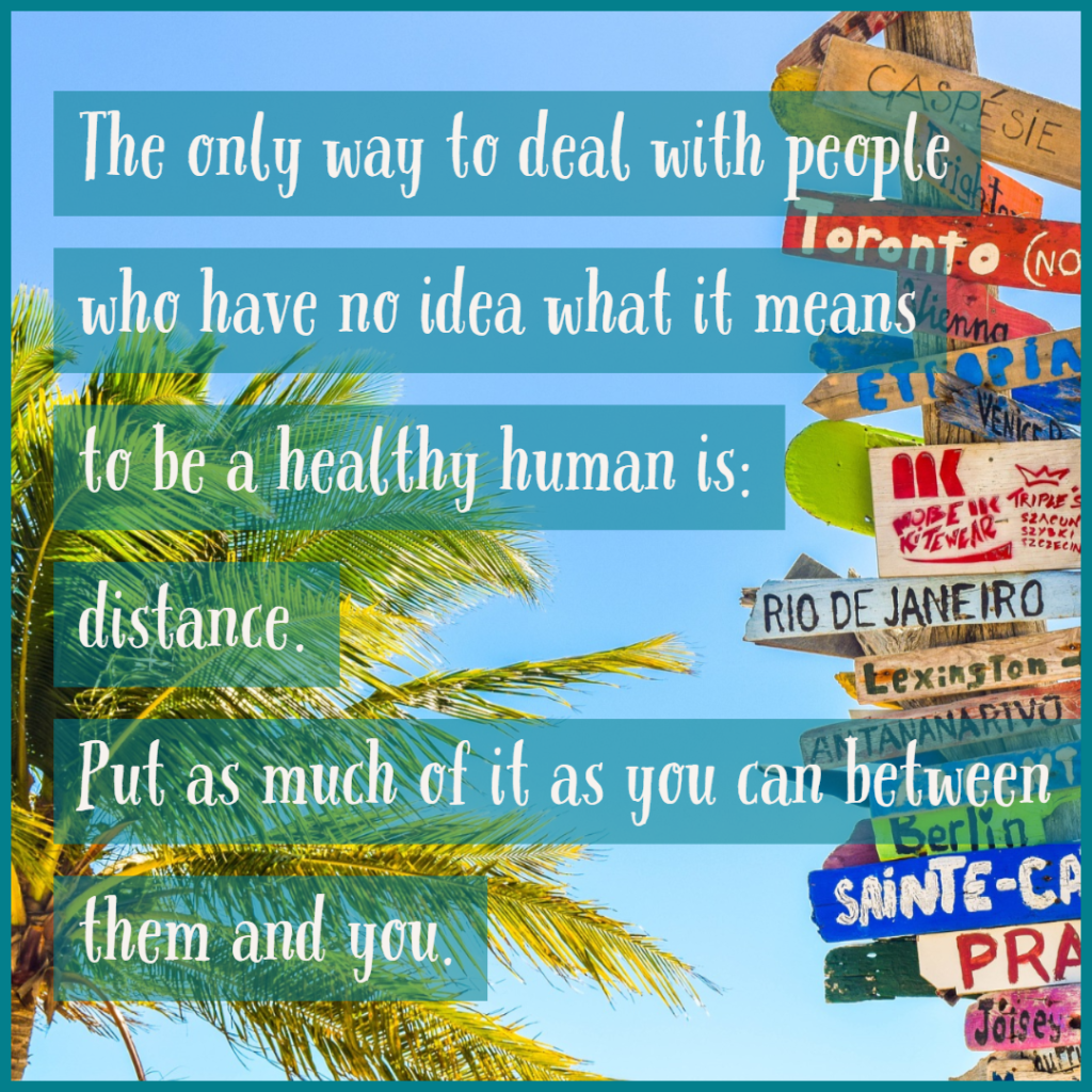 The only way to deal with people who have no idea what it means to be a healthy human is: distance. Put as much of it as you can between them and you.