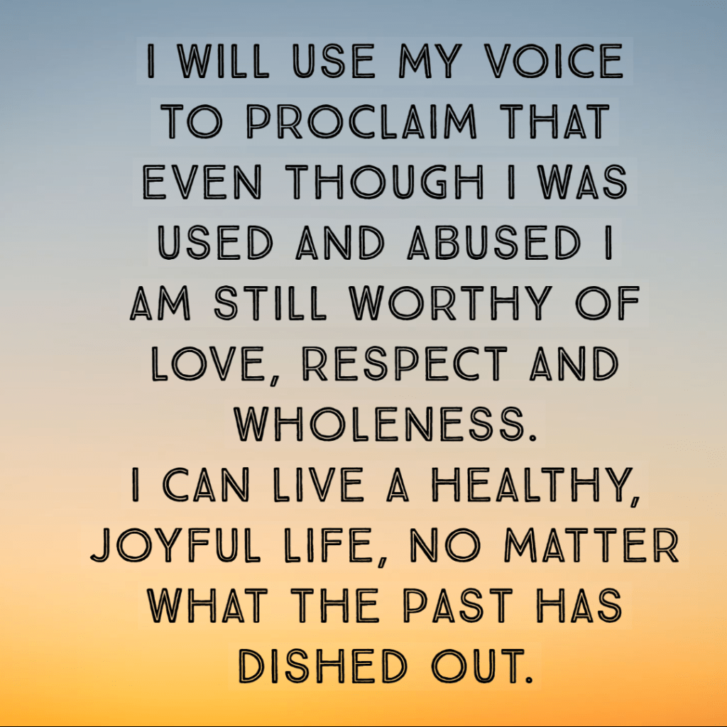 I WILL use my voice to proclaim that even though I was used and abused I am STILL worthy of love, respect and wholeness.